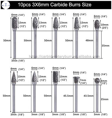 | 10 أجزاء 3 × 6 ملم | 5 × 4 × 0.5 بوصة 3*6mm/0.12*0.24 بوصة (حوالي.) الطول الإجمالي: 45-50 ملم قطر القطع: 1/4 " طول الجذع: 35 ملم قطر الصخرة: 1/8 " |